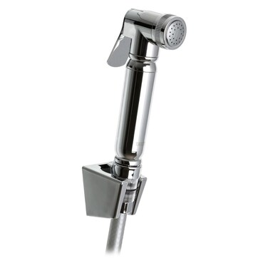 Shower head with chrome finish and operating lever. 1.5 m long shower hose in reinforced PVC, and with decorative finishes