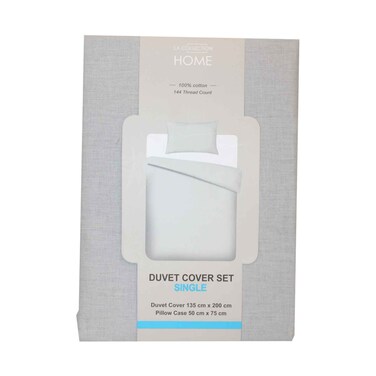 LA Collection Home Single Size Duvet Cover Set Light Grey