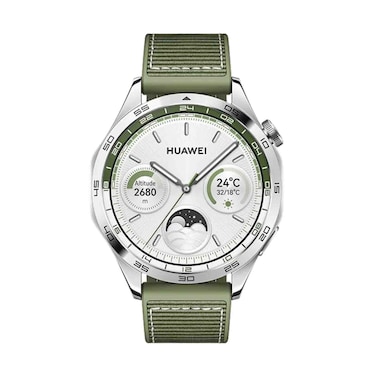 Huawei GT 4 Smartwatch Stainless Steel Case and Green Woven Band, 46mm
