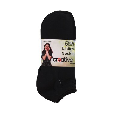 Ladies Ankle Socks 5 Pieces Pack Black Free Size