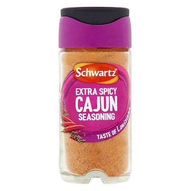 - Schwartz Extra Spicy Cajun Seasoning will take your taste buds on a culinary adventure you'll never forget. Bring a spicy taste of Louisiana to the comfort of your home with this expertly blended mix of cayenne pepper, cumin and thyme.