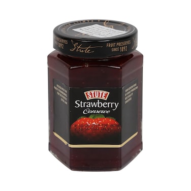 - Stute Strawberry Conserve (Extra Jam) is made with the best quality fruit with no added colours, artificial preservatives or artificial additives. With an improved soft set recipe this jam is perfect on toast, in a cake or with afternoon tea!