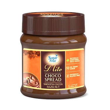 - • Sugar Free D Lite chocolate spread is perfect mix of Hazelnut and Cocoa</br> • Ideal for all your cravings, be its as breakfast, lunch, afternoon snack or after dinner as dessert since its Sugar Free.