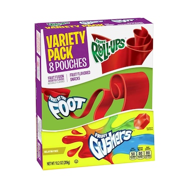 Betty Crocker Fruit Snacks, Fruit Roll-Ups, Fruit by the Foot and Fruit Gushers, Variety Snack Pack, 8 Pouches 144gr