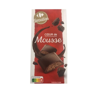 - Savior the taste of bliss as you bite into the new carrefour dark chocolate with mousse fills. The rich crust enrobes the luscious and smooth choco creme made to mesmerize your taste buds. Indulge your senses with the heavenly taste carrefour dark chocolate with mousse fills.