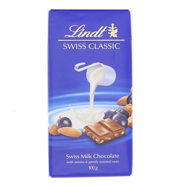 Lindt Swiss Classic Milk Chocolate with Raisins & Gently Roasted Nuts 100g