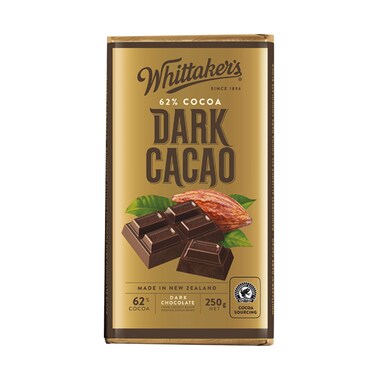 Whittakers Chocolate 62% Dark Cacao Block 250gr