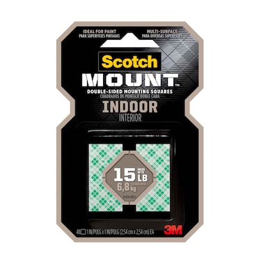 3M Scotch 111H-SQ-48 indoor Mounting Squares, 1 in (25.4mm). 48 Squares/Pack