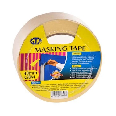 Its a smooth yellow paper masking tape that has premium quality tape capable of holding, bundling, sealing and non-critical masking applications. Constructed from a crepe paper backing for conformability with an instant rubber adhesive coating. Great holding strength that resists lifting or curling that will reduce any reworking