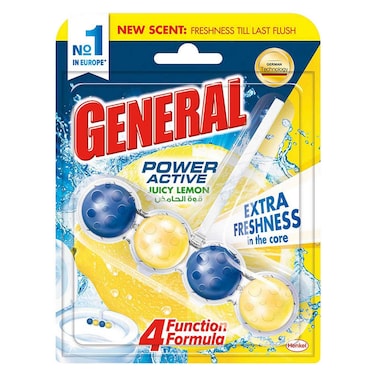 - Der general power active lemon 50g brings brilliant shine and perfect cleanliness into your toilet. The fragrance of active pine der general tabs ensures a long lasting freshness, and hygiene experience even after cleaning. Der general is effective and powerful against limescale.
