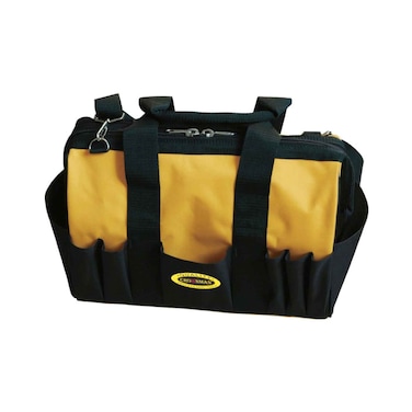 Polyester fabric tool bag was specially made for holding tools. It is constructed with heavy-duty poly material for more durability. Built with several pockets style (16 open and 1one mesh) and 16 elastic loops which help in holding small parts or tools in place. A metal tape clip is included with the bag, adjustable & removable shoulder strap and the steel handle comes with a soft grip for comfort when you carry it