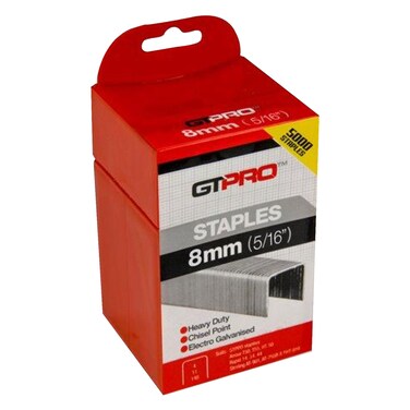 - GTPro chisel point staples are heavy duty and electro galvanized to ensure your stapling is precise, strong, and long lasting. Suitable for use when installing corner bead, this pack has 5000 staples and is compatible with leading stapler brands including the GTPro stapler.