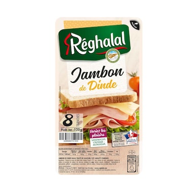 - Reghalal accompanies you in your daily meals with a delicious halal turkey ham in a practical format. Already suitable for making a sandwich based on sandwich bread or a croc monsieur, a simple and quick solution for cold or hot meals!