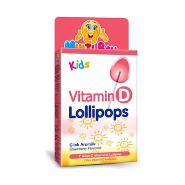 Multiball Kids Vitamin D Lollipops With Strawberry Flavored 7 Pieces