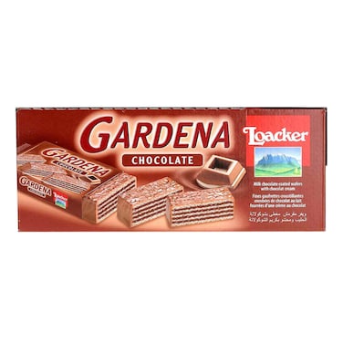 - The loacker Gardena Chocolate is one of the most demanded crunchy snacks amongst the kids. Infused with dark chocolate, the wafer can be enjoyed peacefully at home or on the go. Apart from the great taste, they are also a rich source of various nutrients like energy, sugar, fat, protein, carbohydrates, sodium, and fibre.