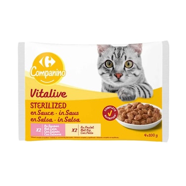 Carrefour Companino Salmon/ Chicken Sterilized Cat Food In Sauce 100gx4 Pieces