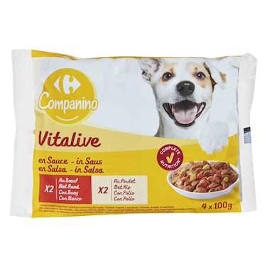 Carrefour Companino Vitalive Minced Beef In Sauce Small Dog Food 100g x 4 Pieces