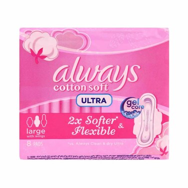 Always Ultra Thin Cotton Soft Large Sanitary Pads White 8pieces