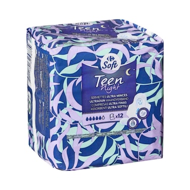Carrefour Ultra Slim Towels Teen Cotton Sensation Night x12