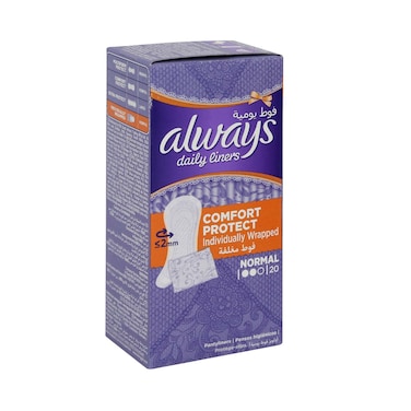 Always Daily Liners Comfort Protect Normal Individually Wrapped 20 Count