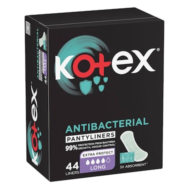 Kotex Sanitary Pad Antibacterial Pantyliners Long 44 Count