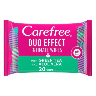 Carefree Duo Effect Intimate Wipes Green Tea & Aloe Vera 20 Pieces