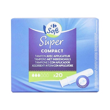 Carrefour Super Compact Tampons With Soft Applicator 20pieces